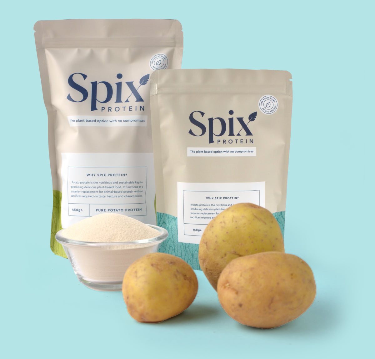 Spix is the brand name of potato protein that can be used as a superior replacement for animal-based protein. The Pure Potato Protein can be used as an excellent egg white replacer, a strong binding element for a burger, a thickener of smoothies or as the main ingredient of a protein shake that will also aid muscle regeneration.